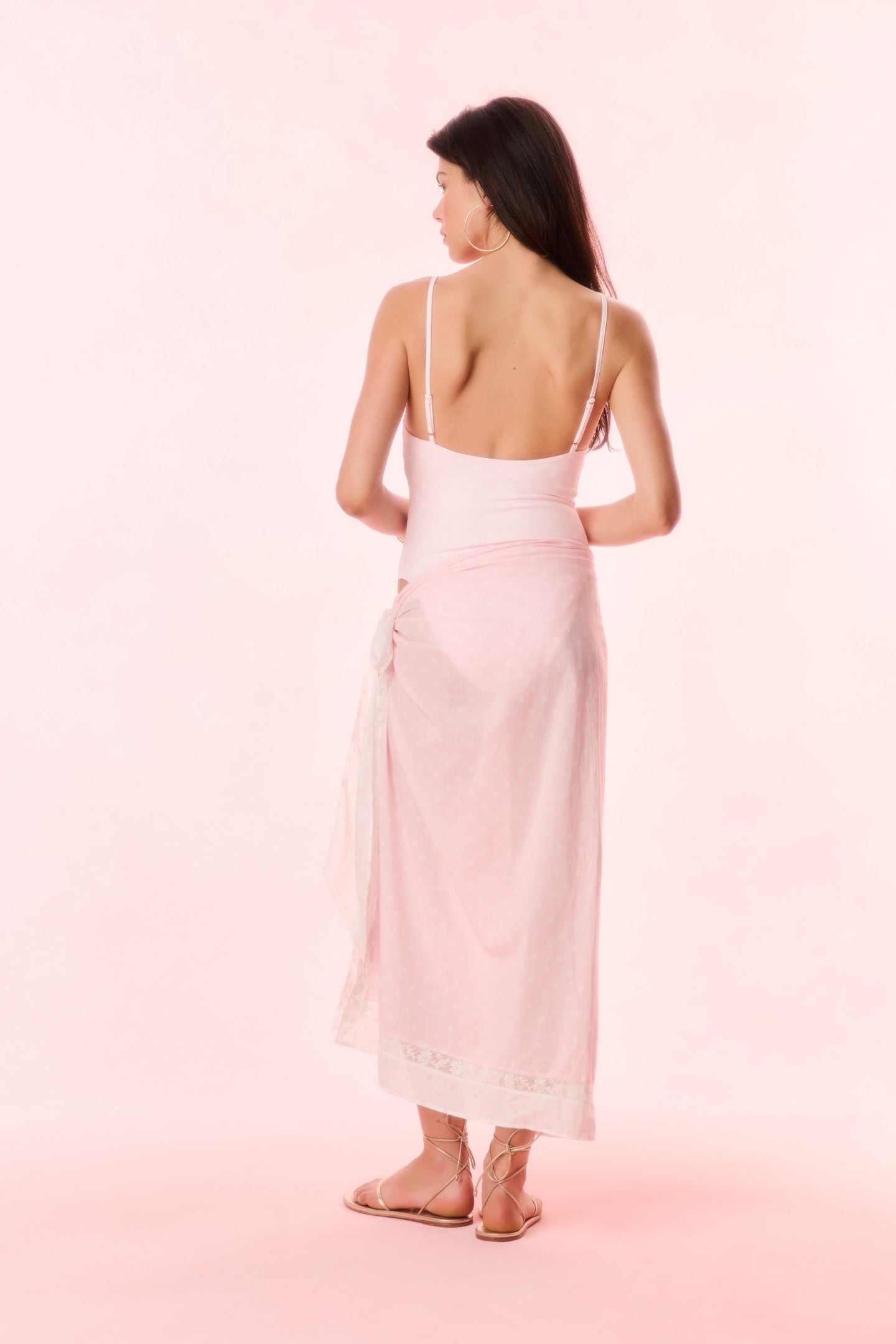 Introducing the Emabella Sarong. This pretty cover-up stuns with a vibrant print and lace trims throughout and a self tie detail. Wear over your favorite swim.