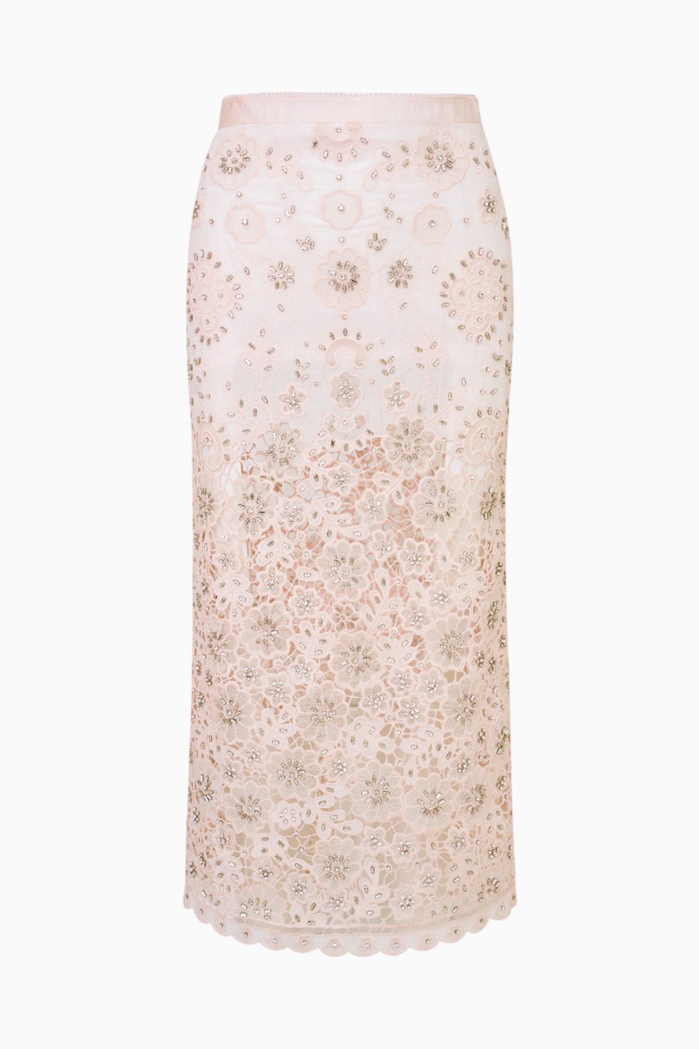 Dressed to impress in the Reeve Skirt. This stunning event midi is designed with a structured, cotton organdy fabric embellished with beautiful, artisanal rhinestones, beading, and floral eyelet details. With a pencil silhouette, the skirt has a flattering fit, a mini-length lining, and includes a side seam zipper. Pair with the Emeryn Top for a full set.