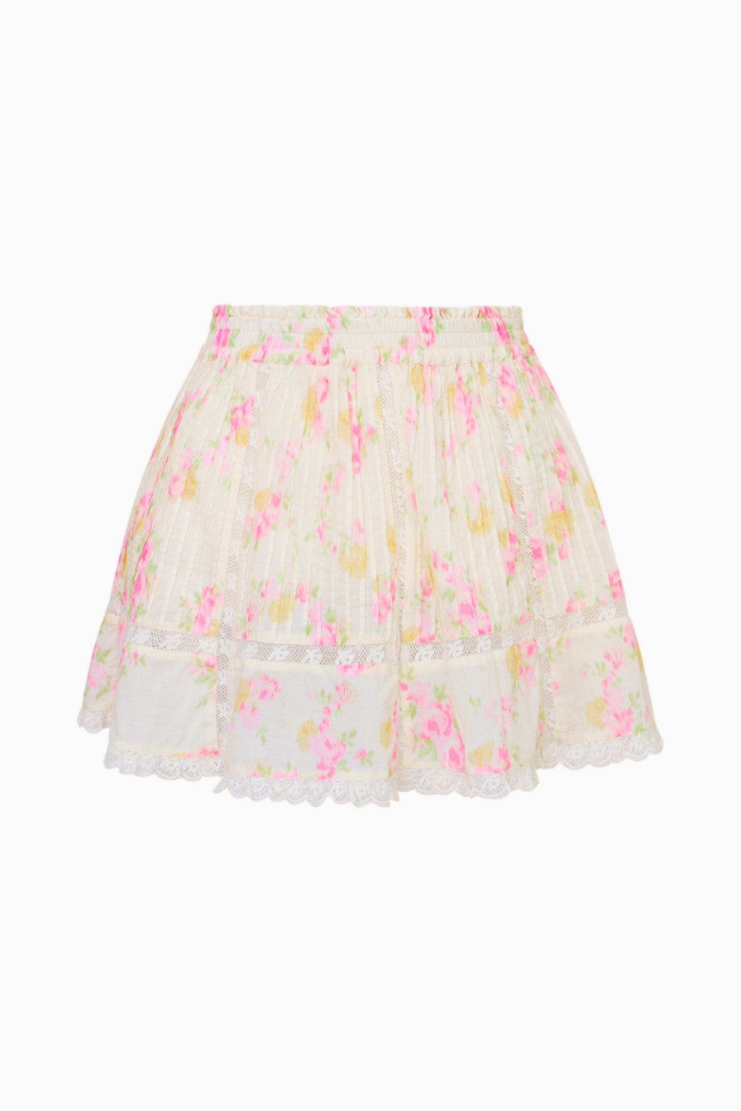 Introducing the Amrina Skirt. Designed on a lightweight cotton voile fabric, this mini features a bright Italian countryside-inspired floral all over. The Victorian-inspired skirt has an A-line silhouette, flirty lace details, and smocking at the waist for easy pull on. Pair with the Elsette Top for a full set.