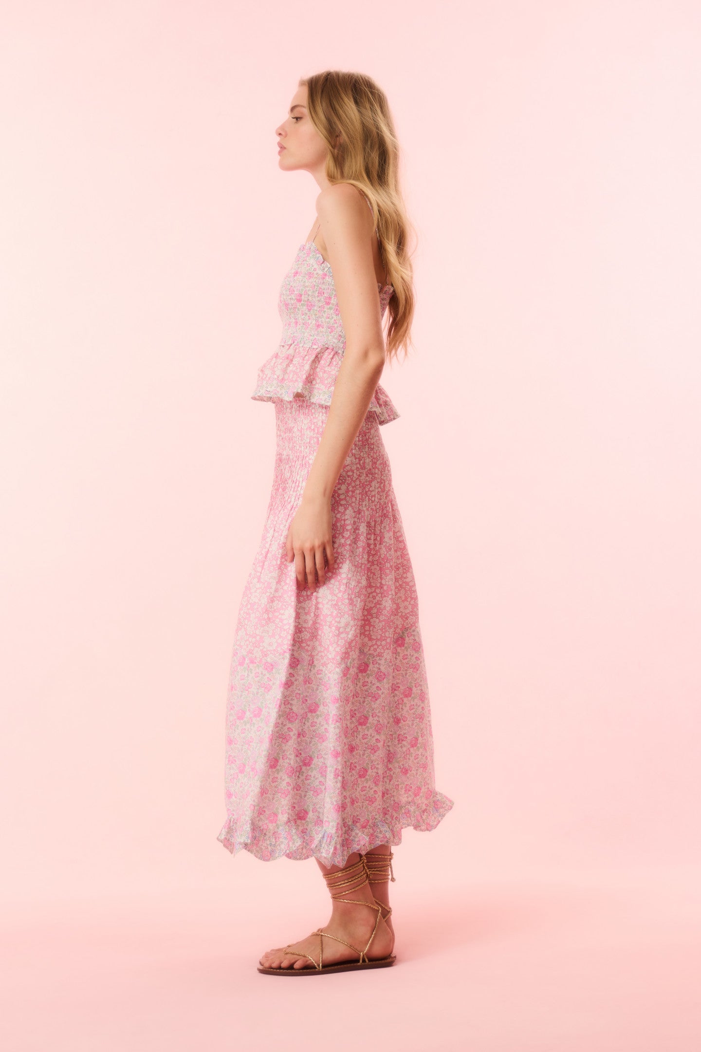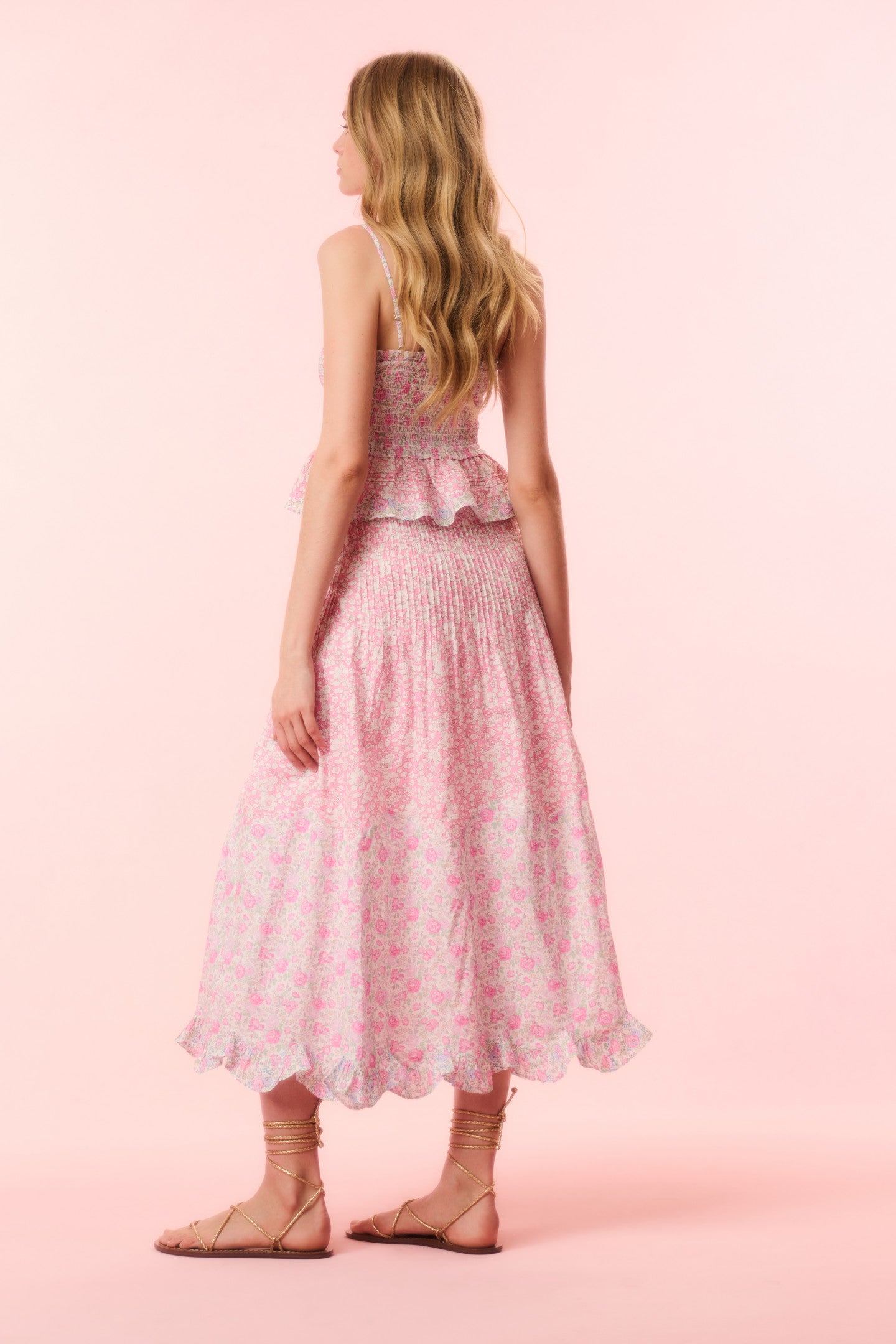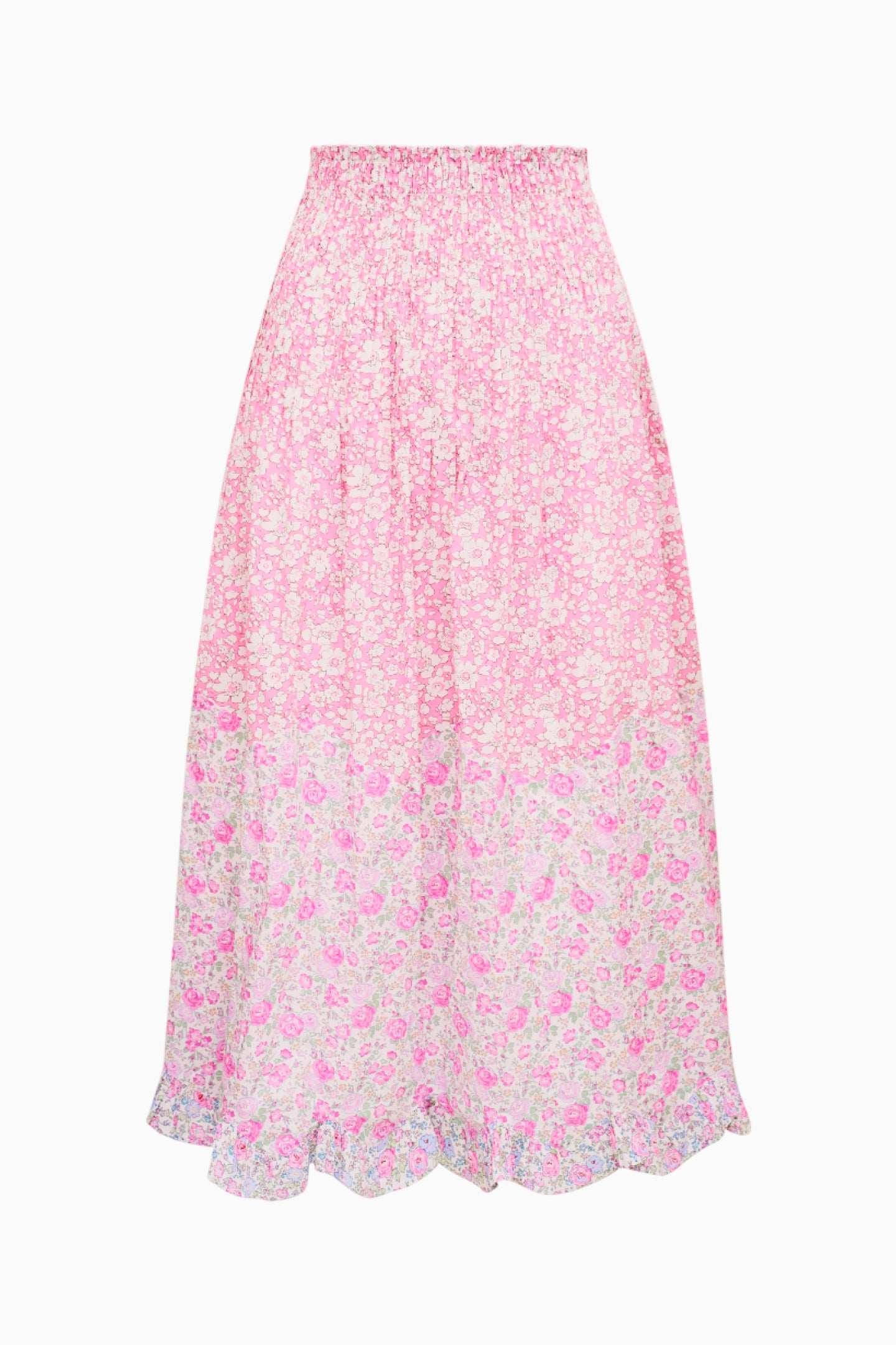 Introducing our latest capsule collection Made with Liberty Fabrics designed into our favorite elevated pieces. The Tian Skirt returns in Liberty's Tana Lawn™ cotton fabric with a two-toned mixed floral print all over.  This stunning skirt has vintage-inspired eyelet details all over with tossed floral embroideries for texture and delicate pintucks. The springtime skirt features an elasticated waistband for easy pull on.