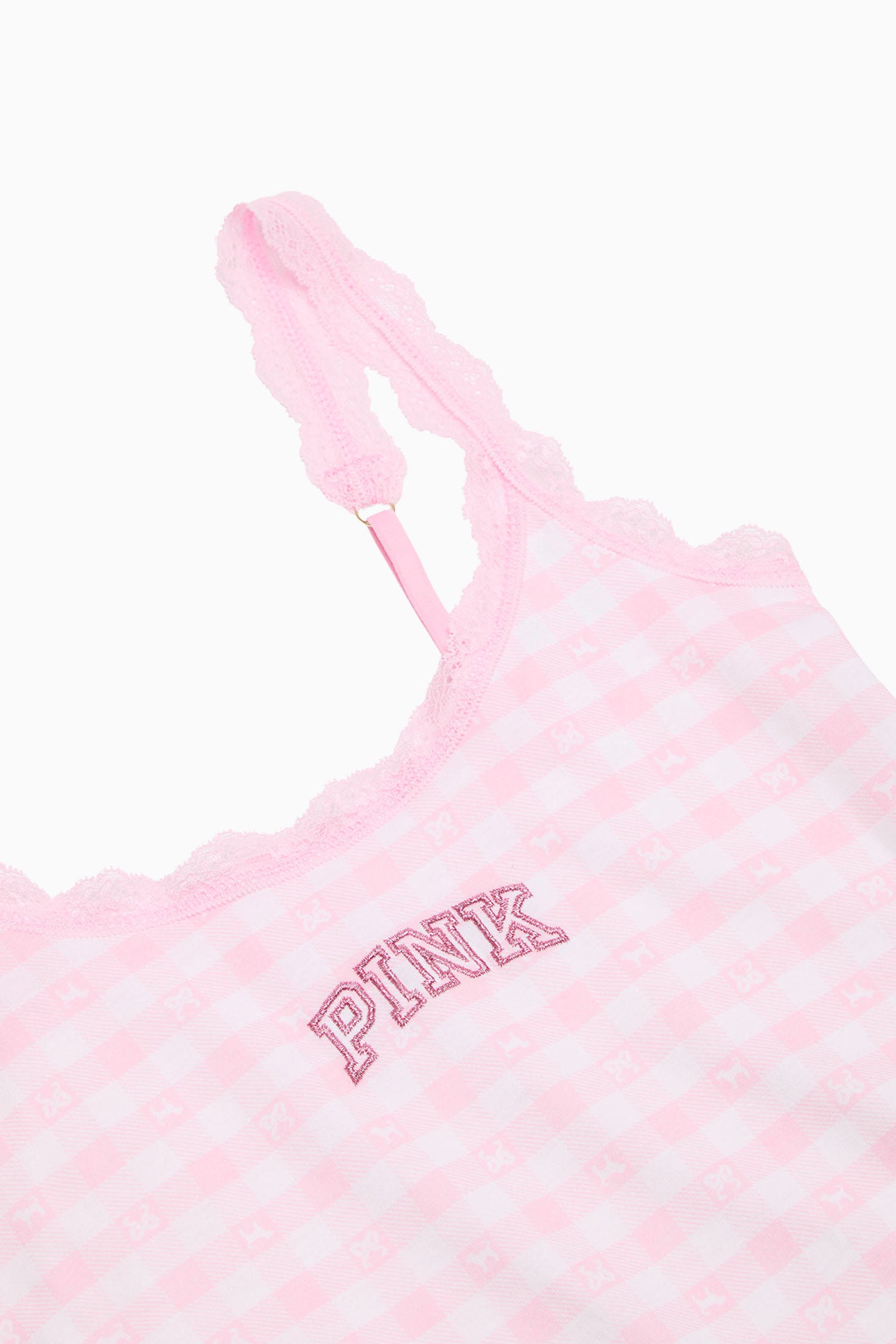 Introducing the Cotton Cami from the exclusive, limited-edition PINK x LoveShackFancy collaboration. Nope, not a dream. Just the cutest Cami you've ever seen. We updated your fave supersoft cotton basic, so now you've got two more options to add into your rotation, featuring super-sweet PINK x LoveShackFancy deets. Pair with the PINK x LoveShackFancy Cotton Foldover Leggings (because the more bows the better, tbh).