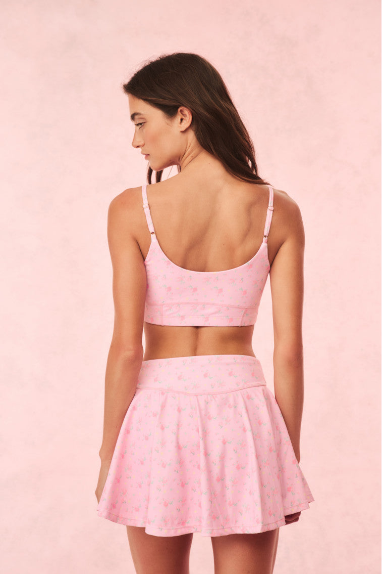 Introducing the Ridgeson Bra. This high-impact sports bra features our signature prints all over. The bra has thin spaghetti straps, a low neckline, a sweet bow detail at center front. Designed with a lightweight, breathable fabric this bra is our go-to piece for days on the go and high to low impact workouts.