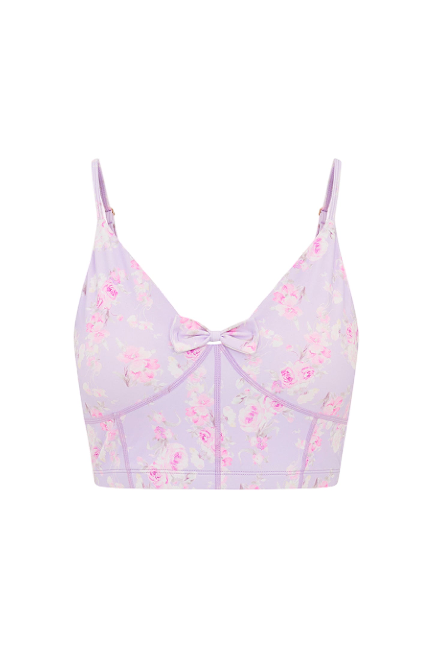 Introducing the Ridgeson Bra. This high-impact sports bra features our signature prints all over. The bra has thin spaghetti straps, a low neckline, a sweet bow detail at center front. Designed with a lightweight, breathable fabric this bra is our go-to piece for days on the go and high to low impact workouts.