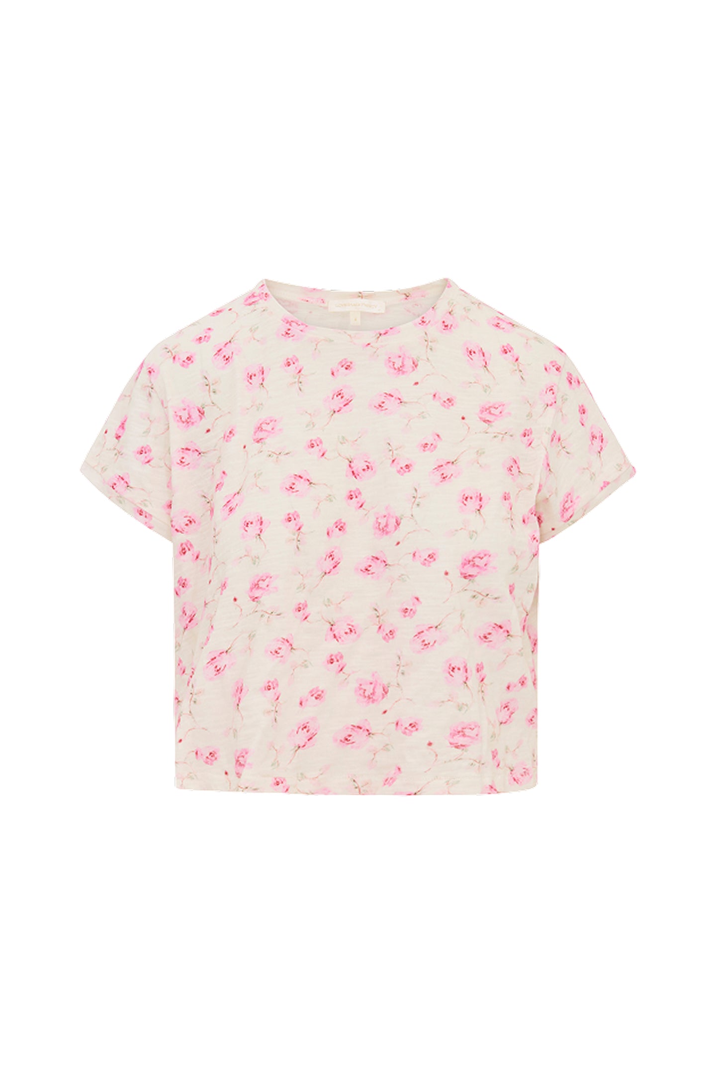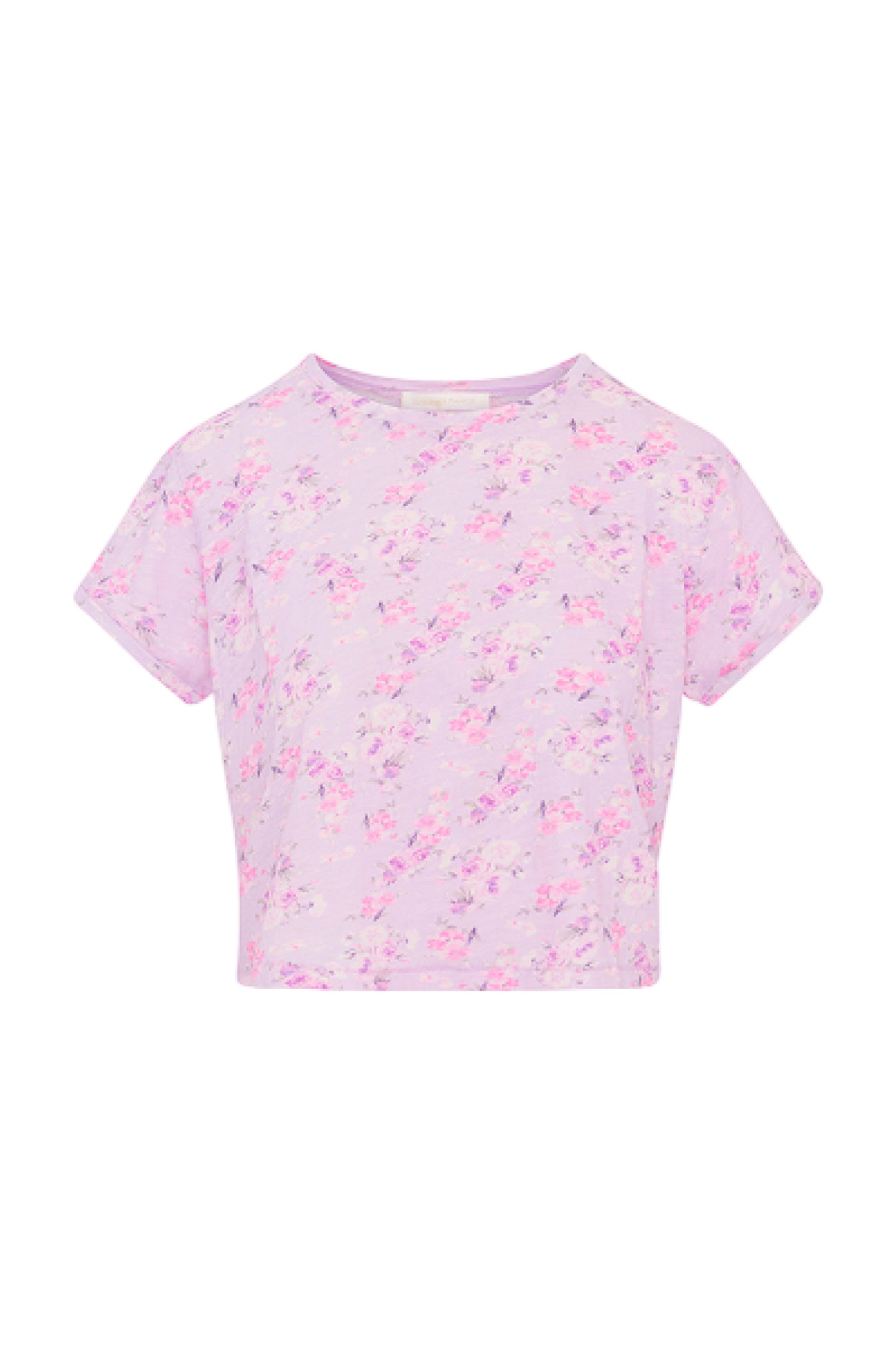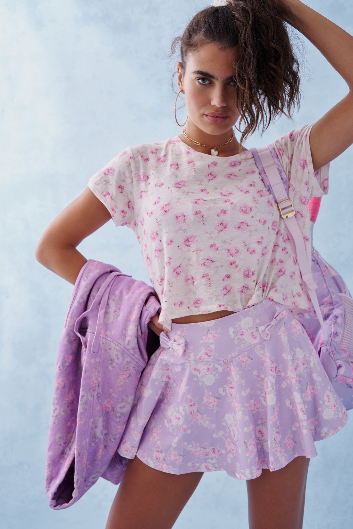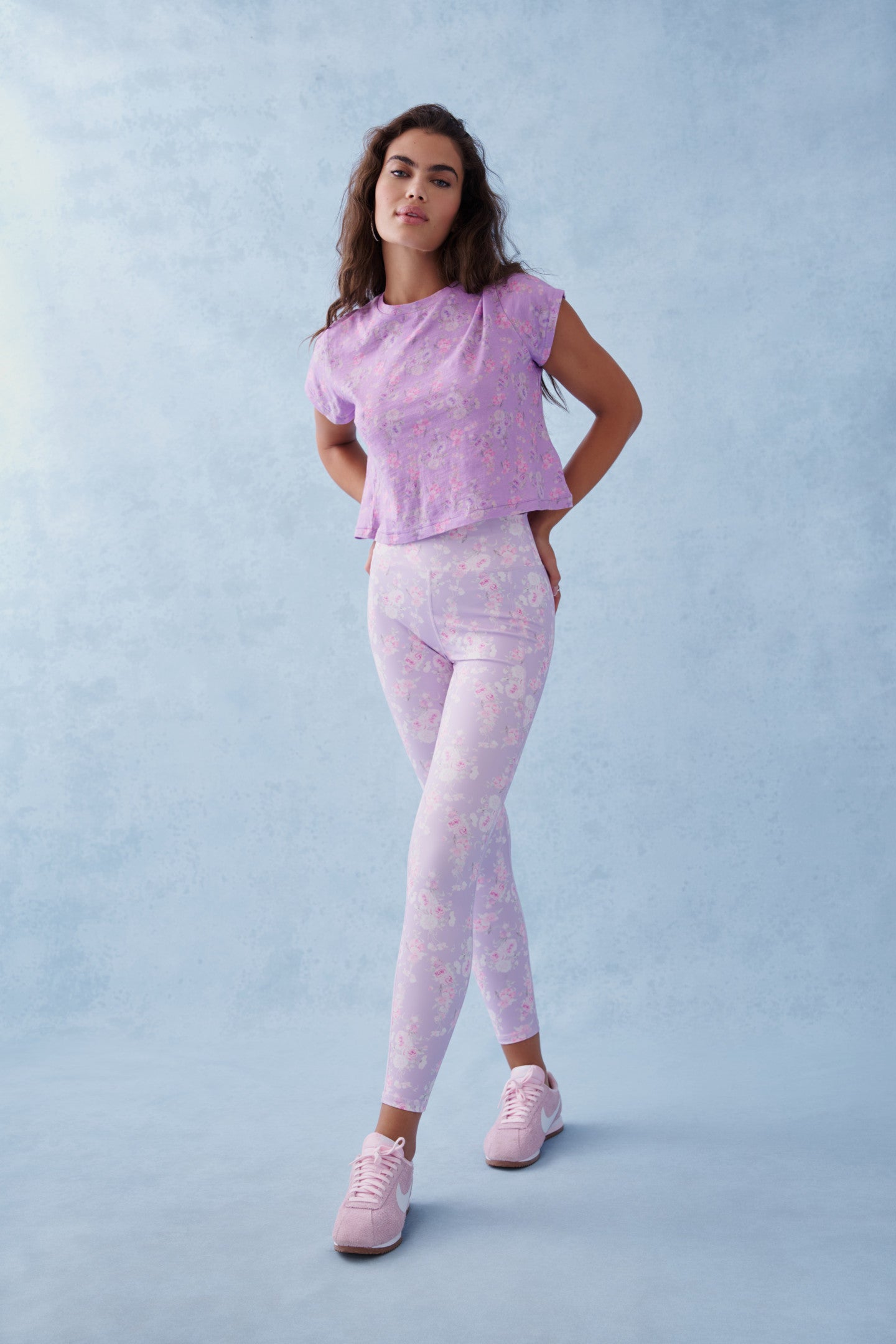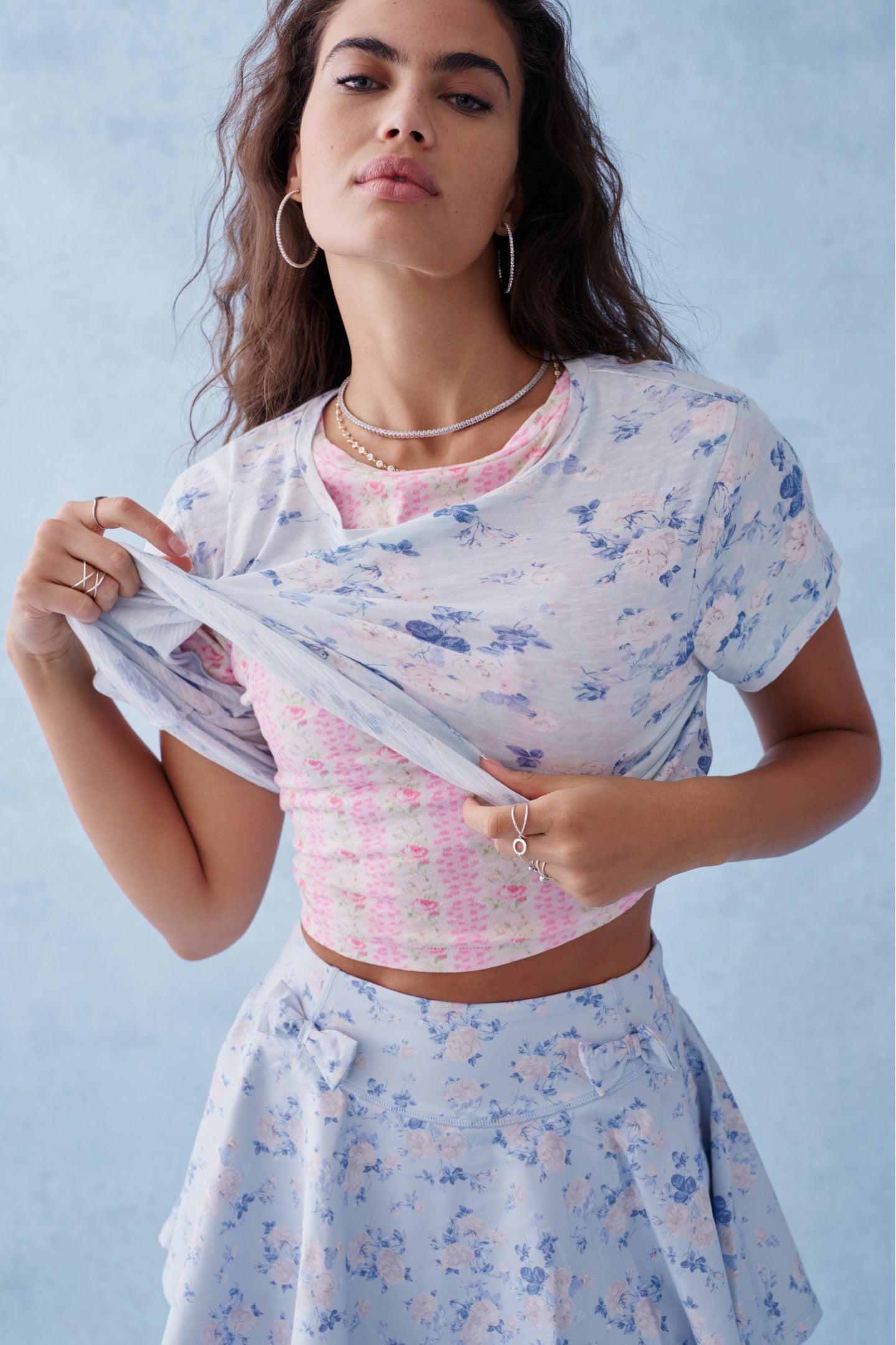 Our best-selling Rubin Tee returns in our signature floral prints. Our hero shaped, cropped tee comes in a stretch fabric. This girly muscle tee has a loose circle neck, cap sleeves, and a cropped bottom hem. It’s the perfect everyday essential.